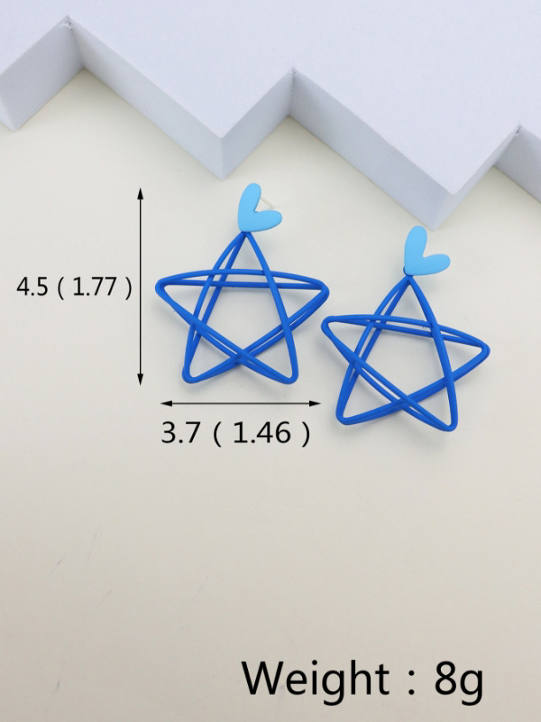 Silver Needle Blue Ear Studs Female Hollow Pentagram Earrings Girl Earrings Heart Shape